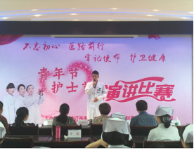 5月3日下午,内江市中区妇联与我院联合举办了以“不忘初心、医路前行、牢记使命、护卫健康”为主题的青年节暨护士节纪念活动演讲比赛。比赛围绕贯彻落实党的十九大和习近平总书记来川视察重要讲话精神,大力弘扬青年和护理工作者优秀事迹,展现当代青年不忘初心砥砺前行、护士白衣天使光辉形象。